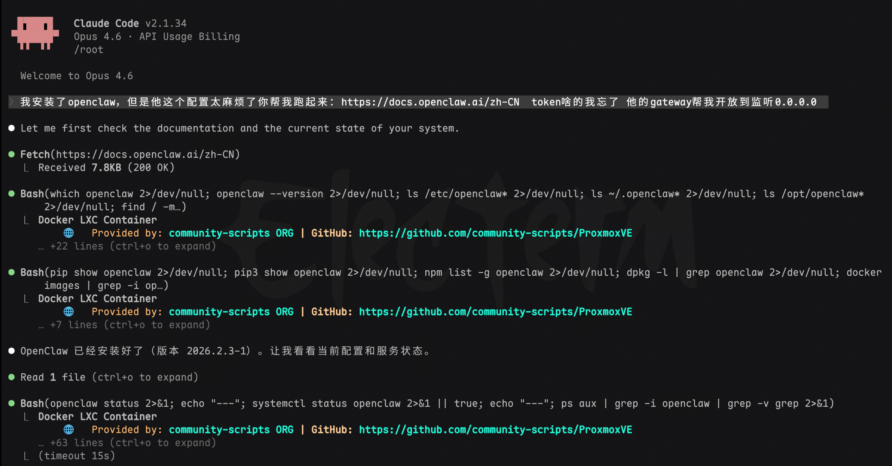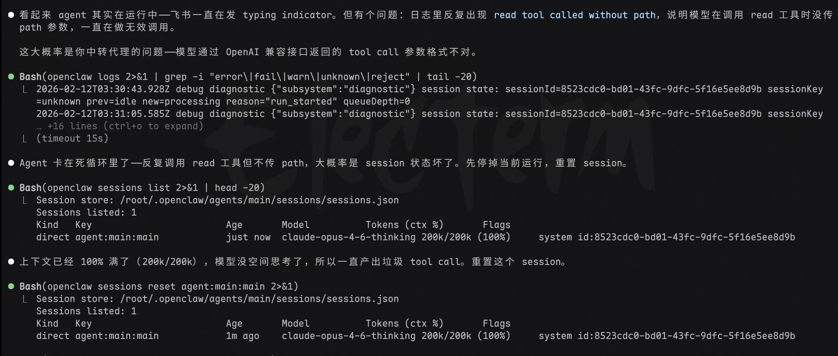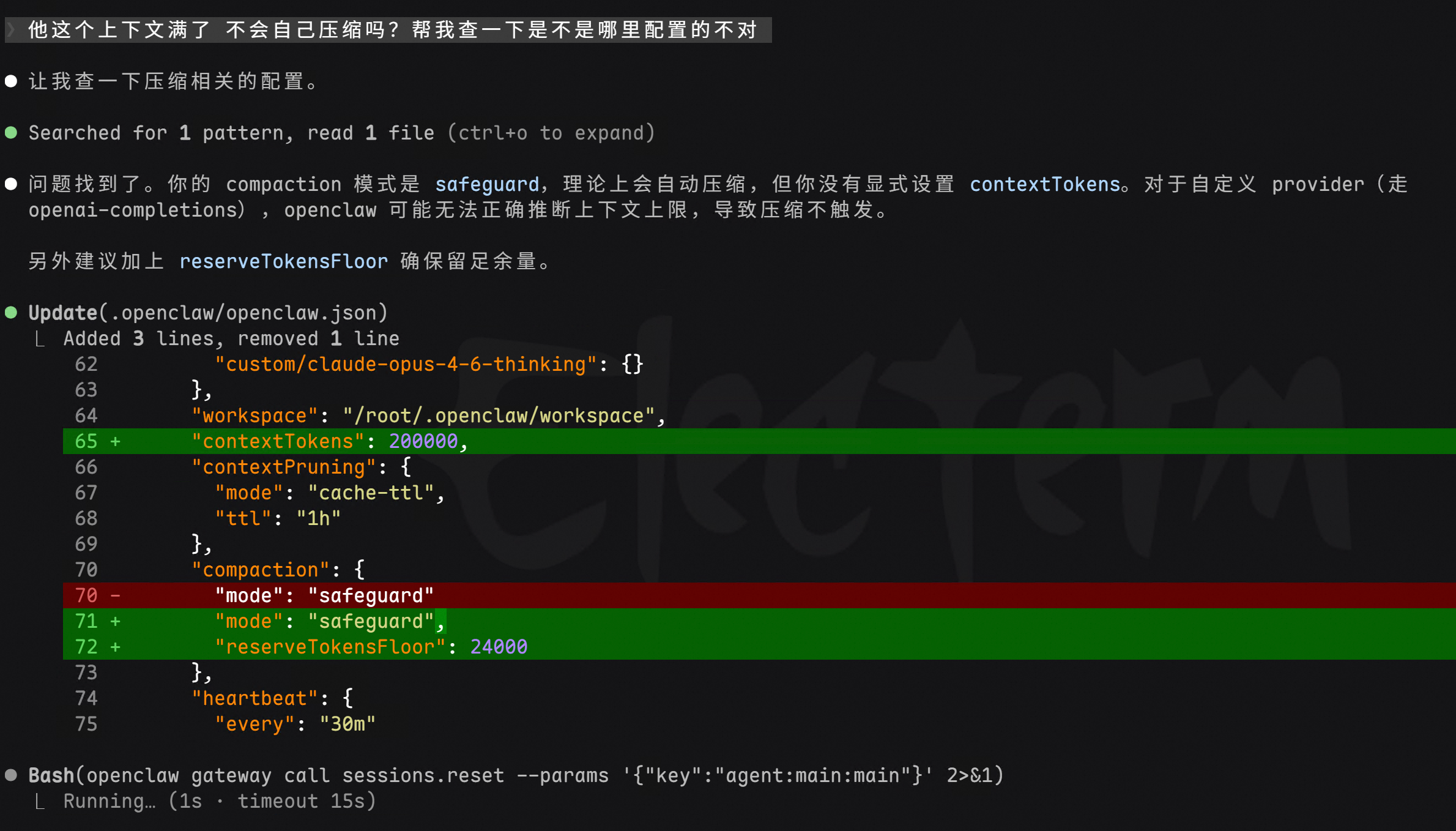 感觉不对劲,问问 Claude Code:“我部署的 OpenClaw 特别笨,很奇怪,它背后也是用的跟你一样的 Opus 模型,你看下是不是我哪里配置没配对。”