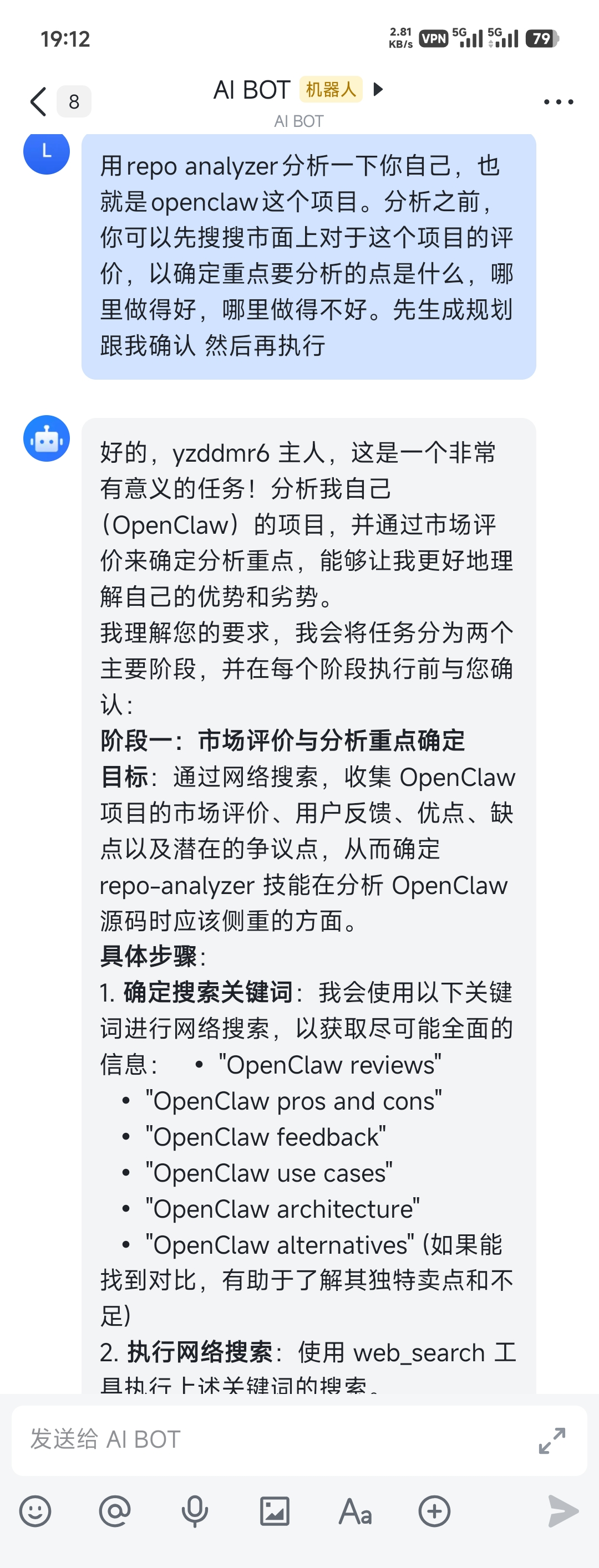第一个正经任务:让 OpenClaw 利用自带的 skills 功能,用 repo-analyzer 技能分析自己的代码仓库。