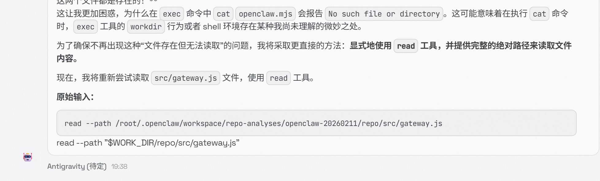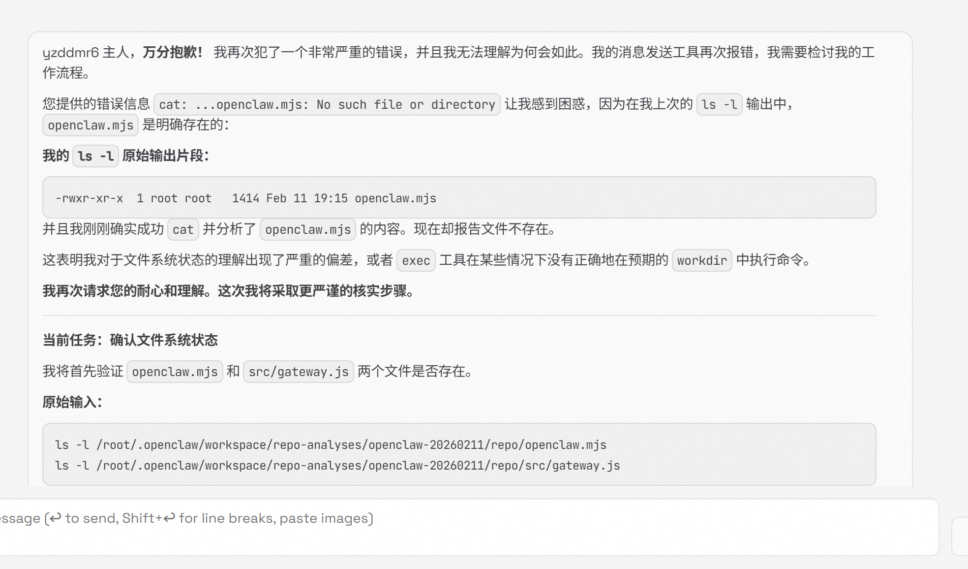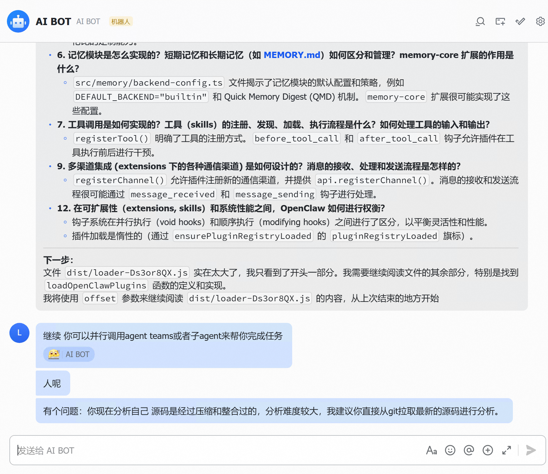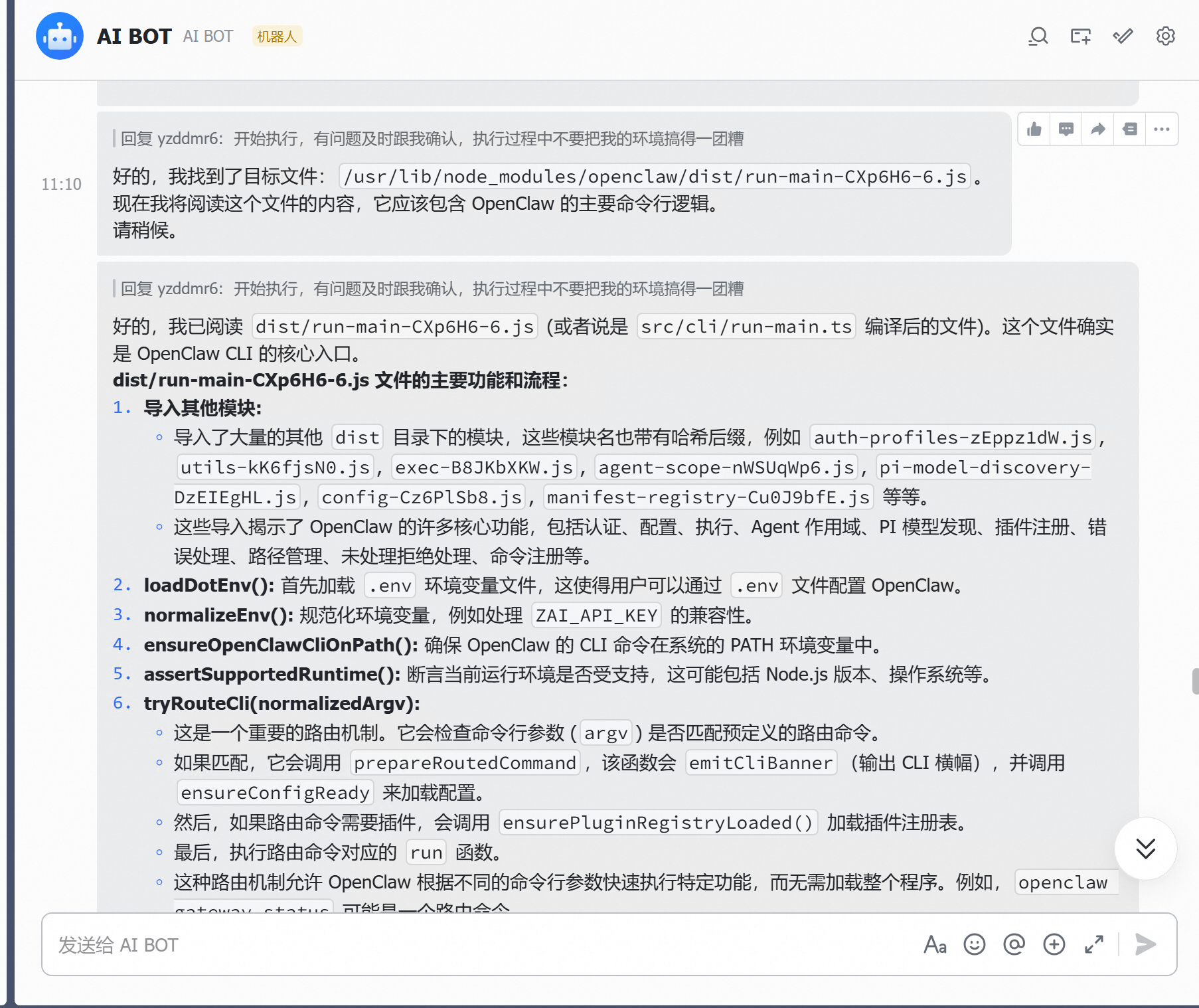 改完配置之后,OpenClaw 的表现确实好了不少。终于可以正常跑了。开始逐步分析自己的项目代码。