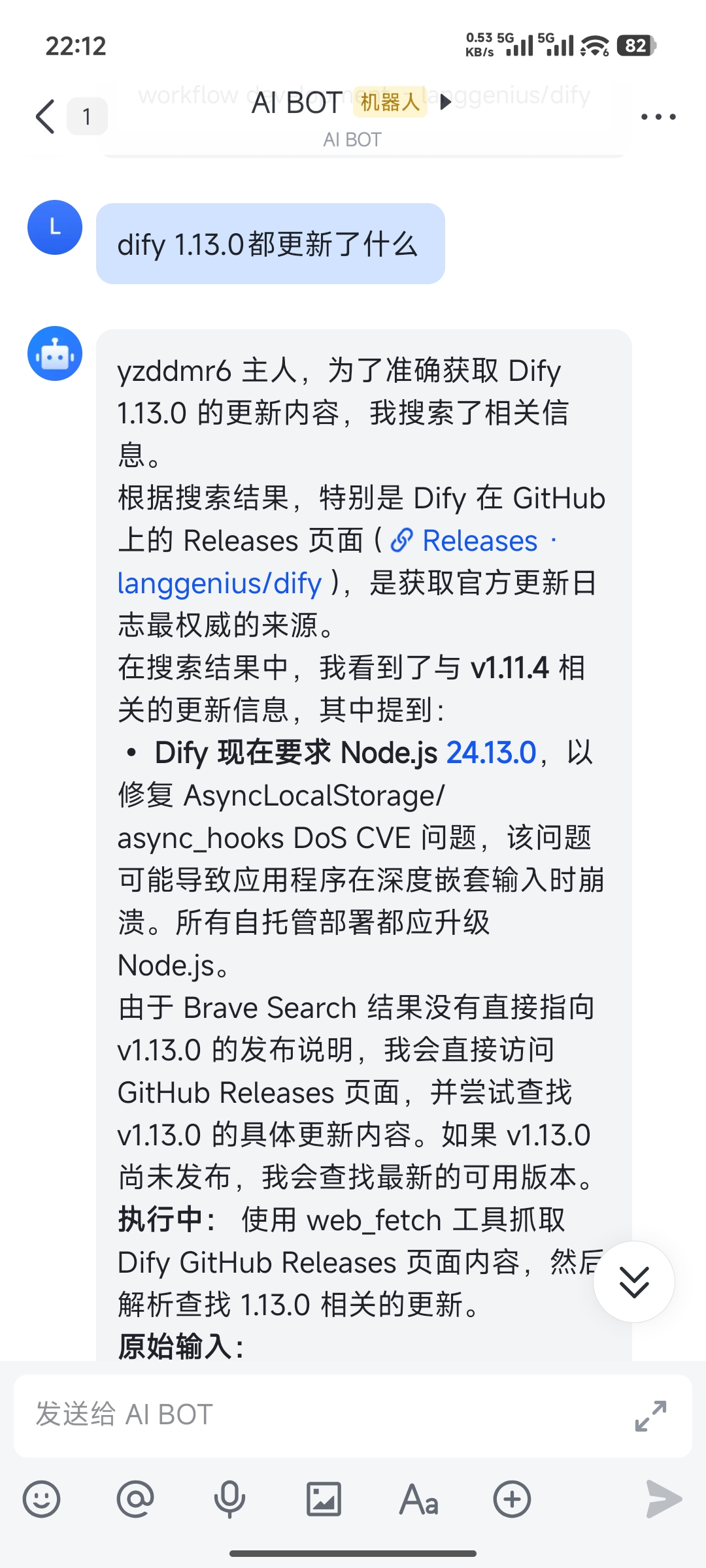 换个问题。背景是 Dify 当天发布了 1.13.0 的更新,看看它能不能帮我总结一下。